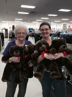 | Thanks, Cassie and Ms. Frances, and Goody's Dept. Store for collecting these awesome big bears! They are perfect for grief and many children will be blessed! |