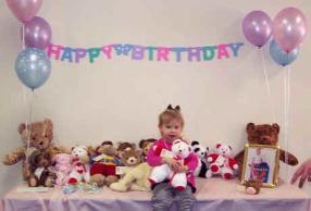 | Holly, friend and playmate of Sailor, celebrated her 2nd birthday with a Teddy Bear Party in 2001. All of her guests, also friends to Sailor, were asked to bring a teddy bear to donate to the Teddy Bear Project in memory of Sailor. |