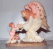 | Pictured left is a Seraphim sculpture sent by the mommies at Babycenter's November 99 board. These mommies shared many milestones with Sailor as they have babies born the same month she was. This scene depicting an angel reaching for a baby girl is perfect for our situation and will always be a treasure. |