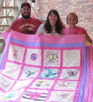 | Gabby's Quilt In 2011, we were introduced to Gabby's family through a dear and mutual friend. The Lewis family of Johnson City, Tennessee, lost their beautiful Gabby to an accident in the summer of 2011. We met Gabby's parents, Shane and Becky, in July 2012 and offered this quilt to them in her precious memory. Click here to see close-up pics of each square and here to see pics of our Tennessee Mission Trip. |