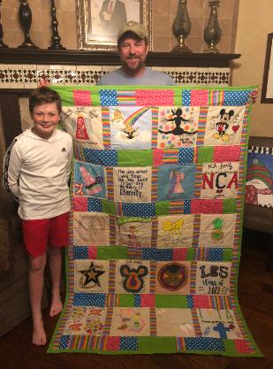 | These pretty quilts (above and below) were created in memory of MaryKate Ashley, a sweet young lady who bravely battled Cystic Fibrosis. We were blessed to know MaryKate all of her life and she was special to Sailor Kate Ministry. She shared bears for us on so many hospital trips! Click here to see close-up pictures of her dad's quilt and here to see close-up pictures of her mom's quilt. |