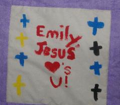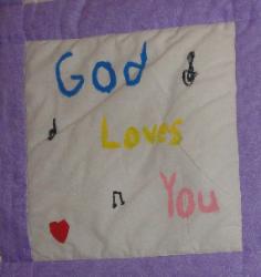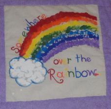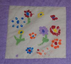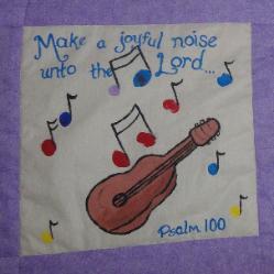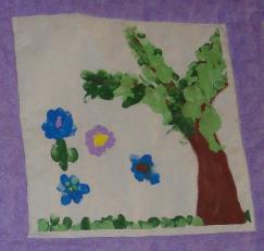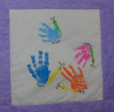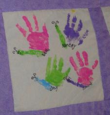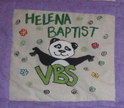 | The kids at Helena Baptist Vacation Bible School enjoyed working on this project. Everyone participated from the smallest babies in the nursery to the oldest kids in our youth and loved getting their hands in the paint. Painting was done with fingerprints, handprints and brushes. |