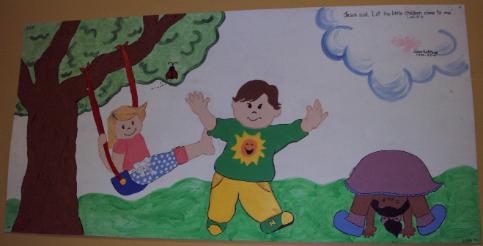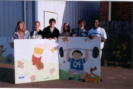 | Sapp's Physical Therapy (from the Telfair Enterprise) Several TCHS students volunteered to paint several lively, colorful murals on a wall in one of Sapp's Physical Therapy's rooms late last school year. The project was headed by Wendy Lee and is part of "Sweetpea Ministry," in memory of Lee's daughter, Sailor Kate, who was killed in a tragic accident several years ago. Sailor Kate's nickname was "Sweetpea." Lee reports the office's owner, Joe Sapp, wanted to decorate the room designated for kids at his office and contacted Lee, who has painted murals in honor of Sailor Kate at the hospital. The following students participated: Austin Williams, Drew Joiner, Brittany McKinnon, Donnie Wooten, Laura Walker and Whitney Mimbs. |