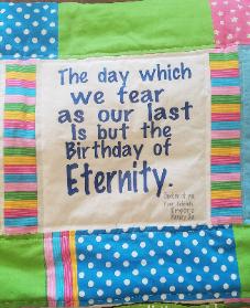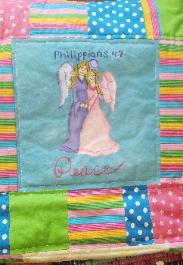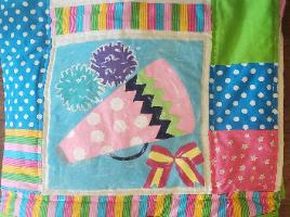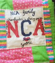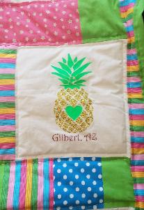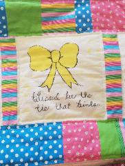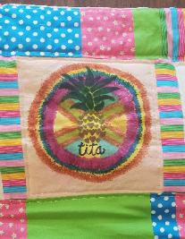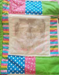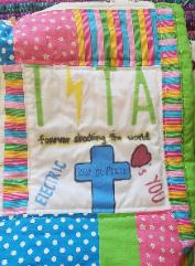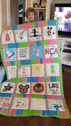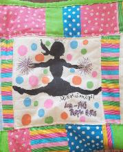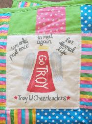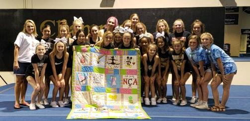 Tita and her mother, Emma, captured our hearts when we learned of their tragic accident while we were at a cheer competition. Any sport tends to bond people together and we wanted to offer James and Jimmy comfort through one of our quilts. The squares for this treasure were all designed by "cheer people".