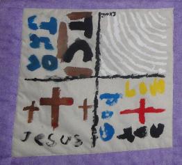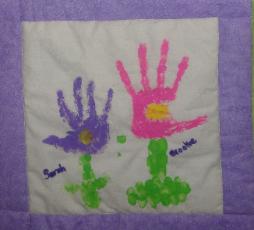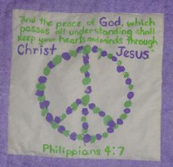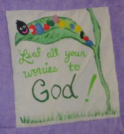 | The kids at Helena Baptist Vacation Bible School enjoyed working on this project. Everyone participated from the smallest babies in the nursery to the oldest kids in our youth and loved getting their hands in the paint. Painting was done with fingerprints, handprints and brushes. |