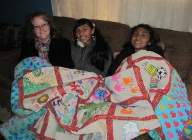 Josey Zavala and the quilt.